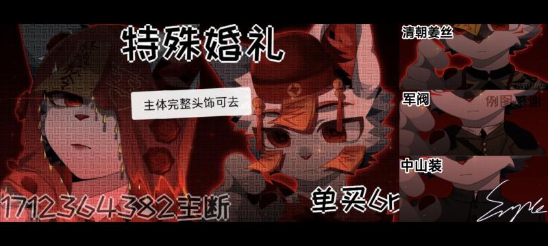 震撼价 一对情头仅需6元!并有5套衣服!帽子符文均可拆本模板一共有三个系列。分别是特殊婚礼,中式婚礼,西式婚礼。全部打包仅需20
