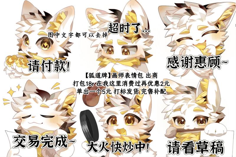 18.8元6个表情包单买一个5元,文字可以自行添加。也可以做兽牌/名片/收款码用。超多玩法,等你来发现。